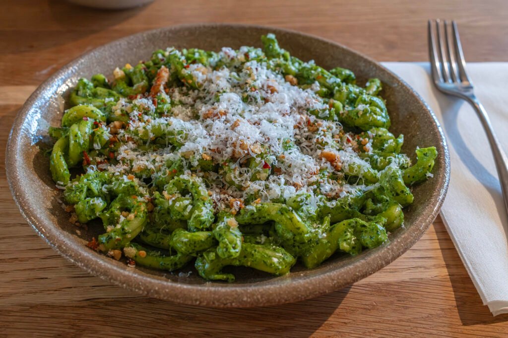 I ordered a tea and the walnut and kale pesto trofie pasta. The tea never arrived (the only bum note) but we had water and the food arrived quickly so I never chased it and we got it taken off the bill at the end.