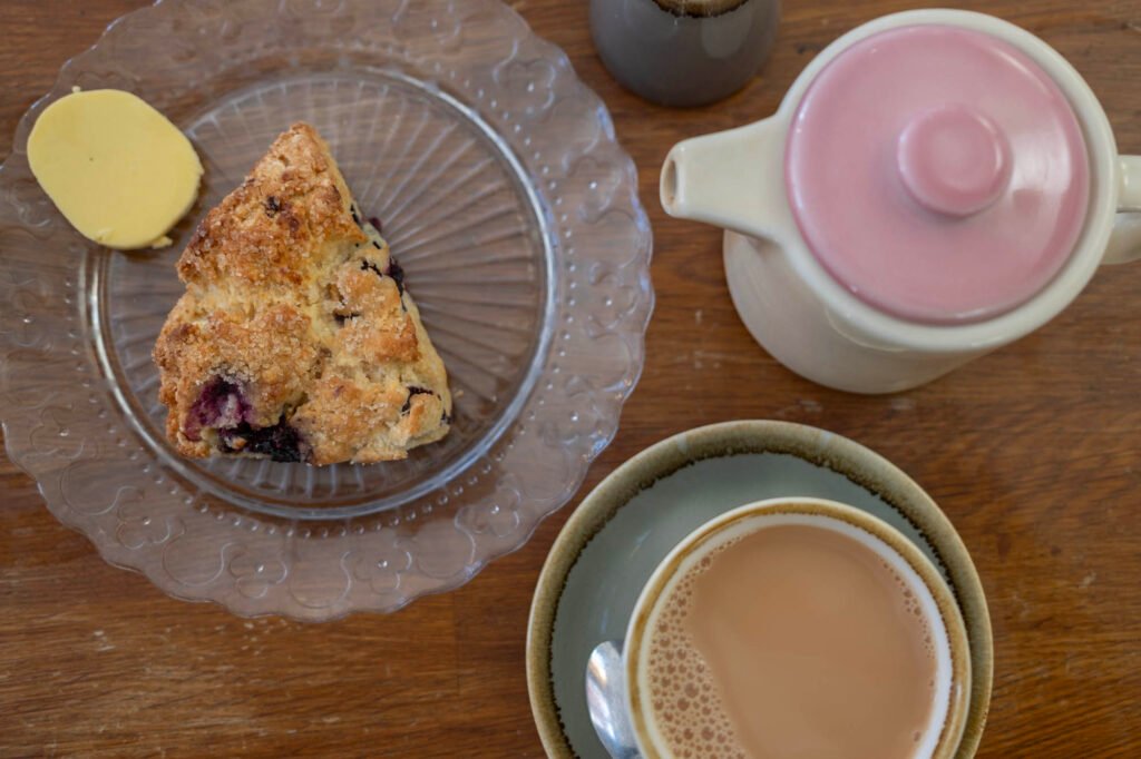 Before really getting started on exploring, we stopped in their cafe (which I’d seen featured in the Guardian’s list of 50 best museum cafes in the UK) for a late morning cup of tea and a lemon and blueberry scone each. It was beautifully bright with blue skies out but still pretty chilly, so we forewent a table outside in their beautiful garden and ate inside.