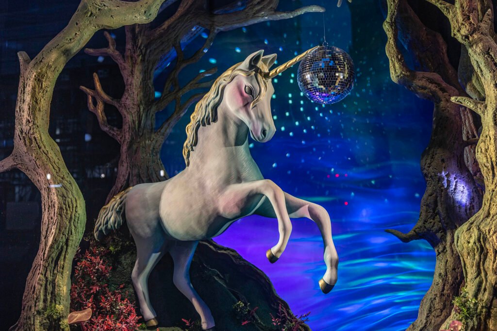Our first stop is always Fortnum & Mason, for their window displays. Fortnums always have the most magical displays and other than maybe two years ago, for the most part, the focus isn’t on Fortnums products in the front windows, leaving them free to embrace whimsy. This year’s displays featured a unicorn with a disco ball, a narwhal, a Christmas turkey and a yak. Look out for the tiny mice who tend to make frequent appearances in the windows too!