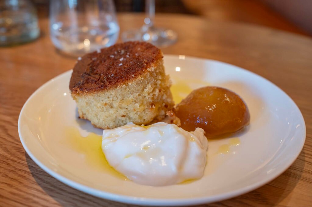 We finished up by sharing an olive oil and almond cake served with peach and yoghurt and two glasses of dessert wine.